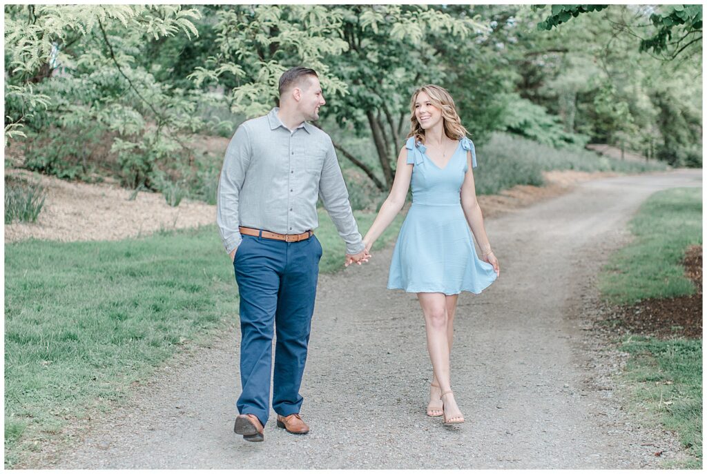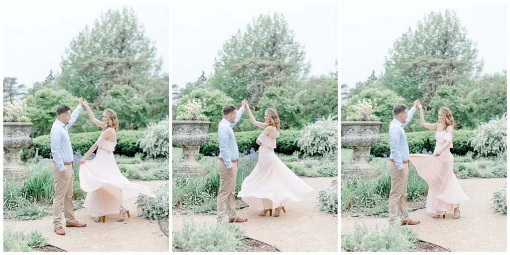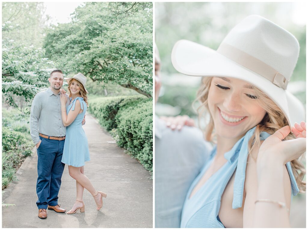 I had my hair and makeup done by Flawless Hair & Makeup —who did a truly phenominal job! I always recommend professional hair and makeup for engagement sessions — it truly makes a difference on camera. My outfits were from Altar’d State and Morning Lavender, featuring soft pastel tones that photographed beautifully. The light blue dress was a nod to our future wedding colors! The flowy pink dress was perfect for twirling.