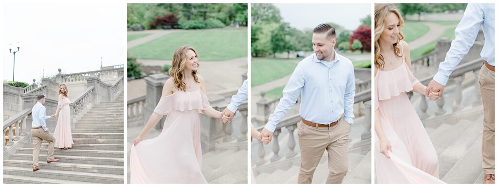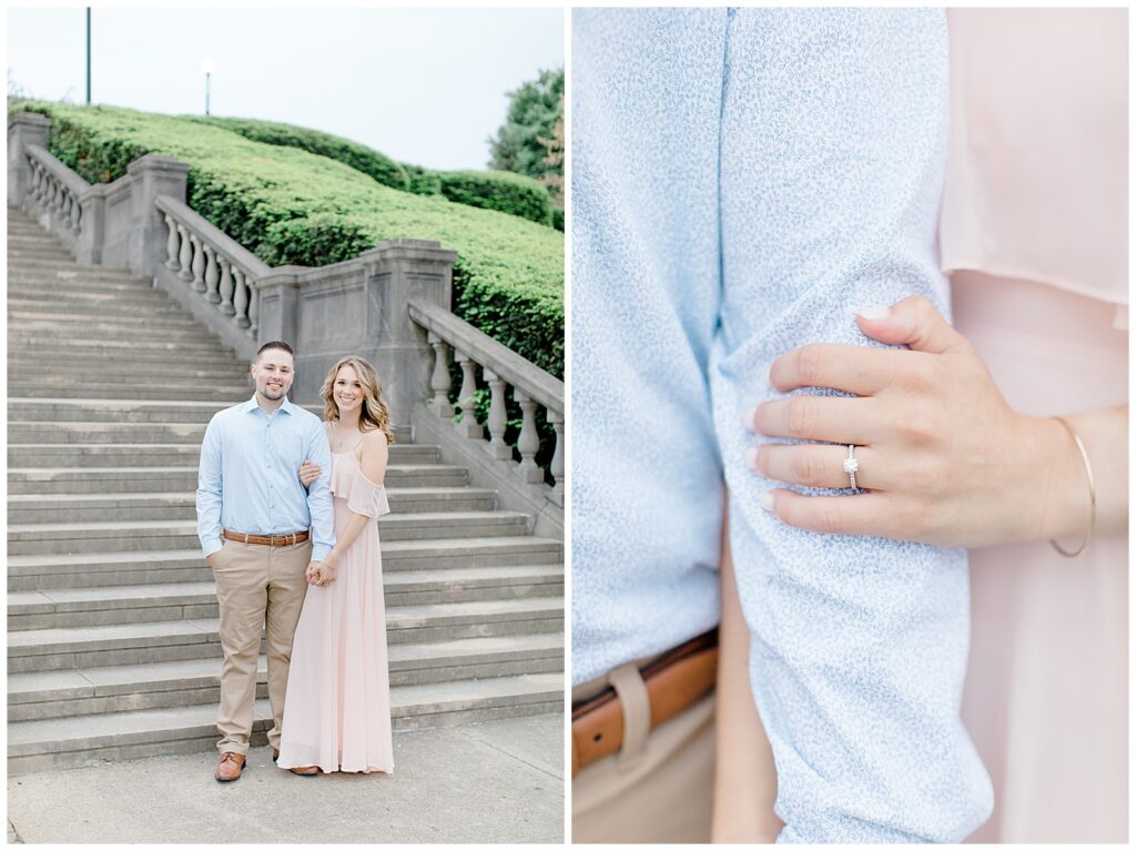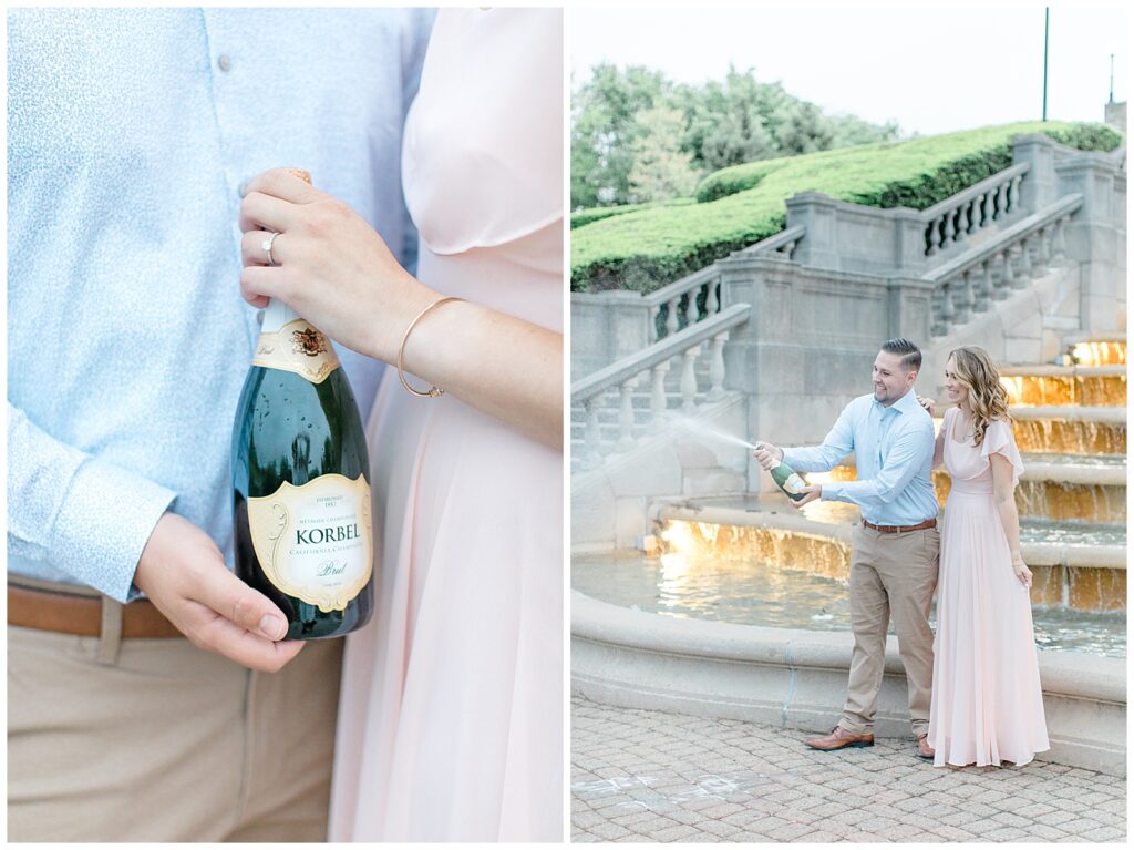 Ault Park is one of my favorite engagement locations in the Cincinnati area, and it was the perfect place to wander the gardens, steps, fountains, and pavilion. We ended the session with a champagne pop — the perfect way to celebrate!