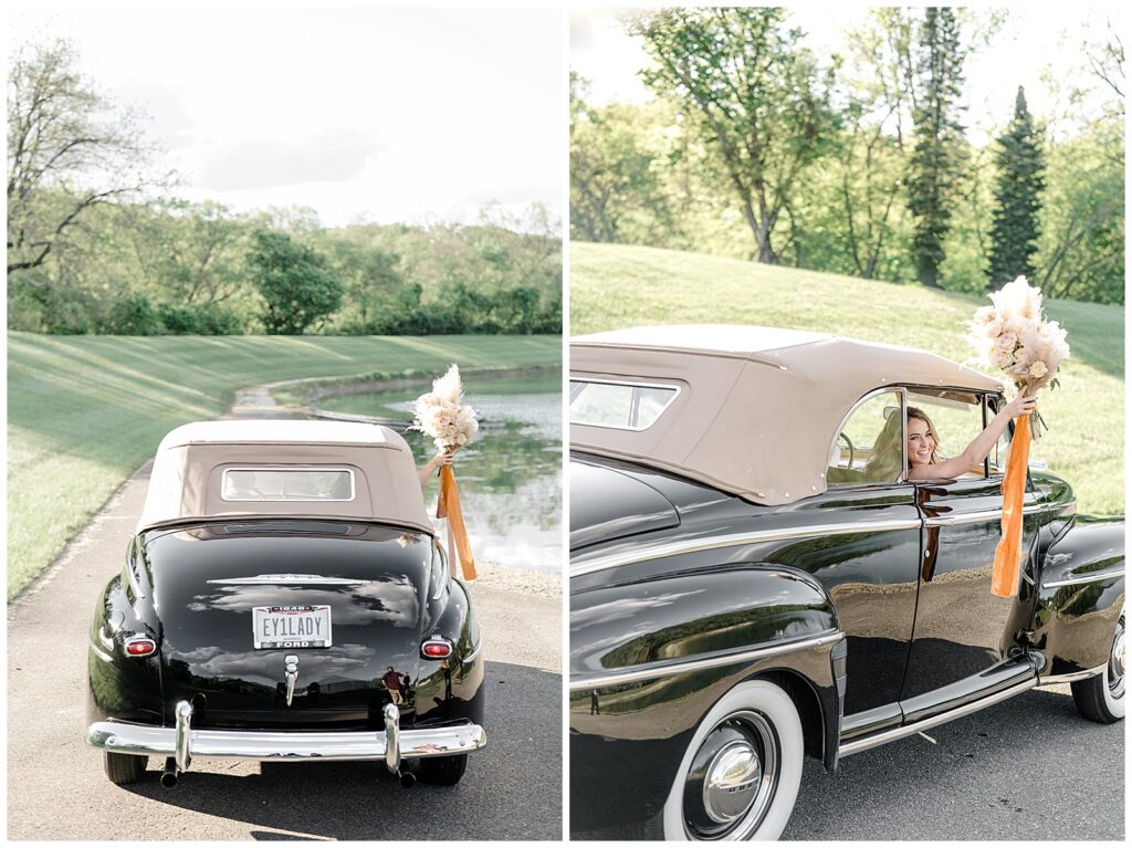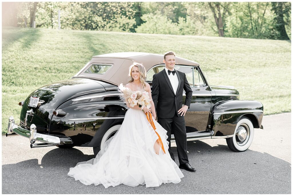 We returned to the first couple at another lounge area by the little house, where the bride changed into a dramatic, poofy gown. From there, we moved back to the pond for golden hour portraits with a vintage “getaway car,” capturing soft, romantic light that made the scene feel truly cinematic.