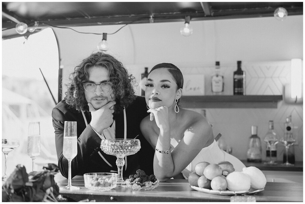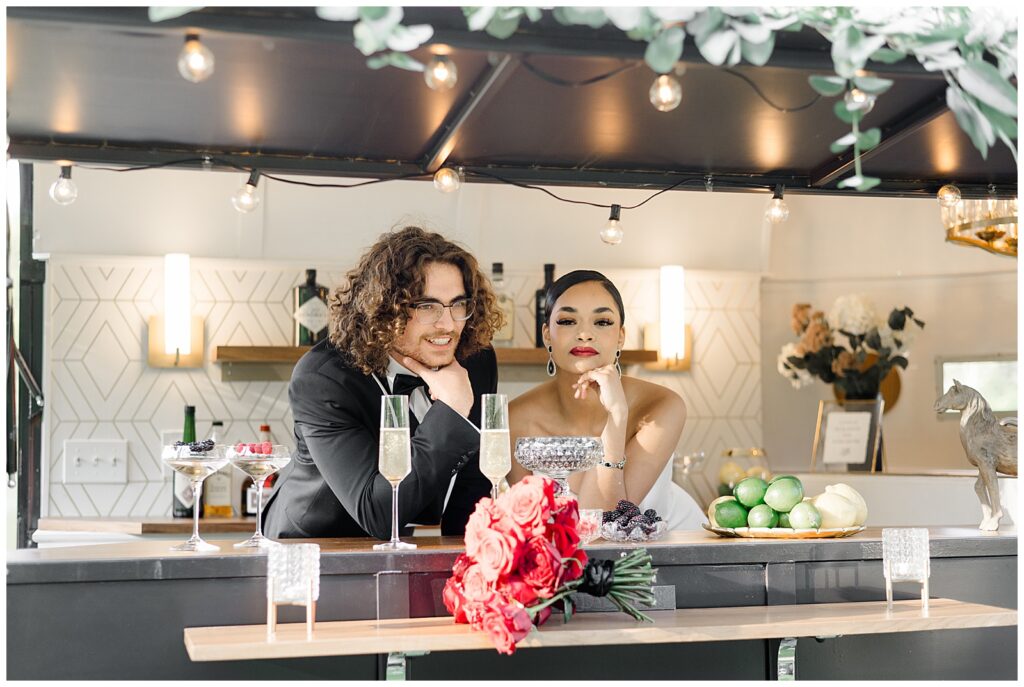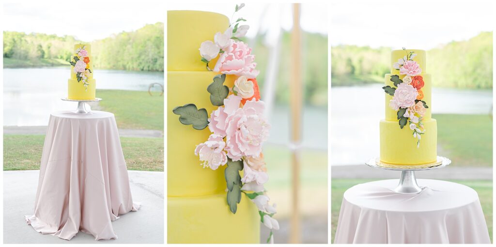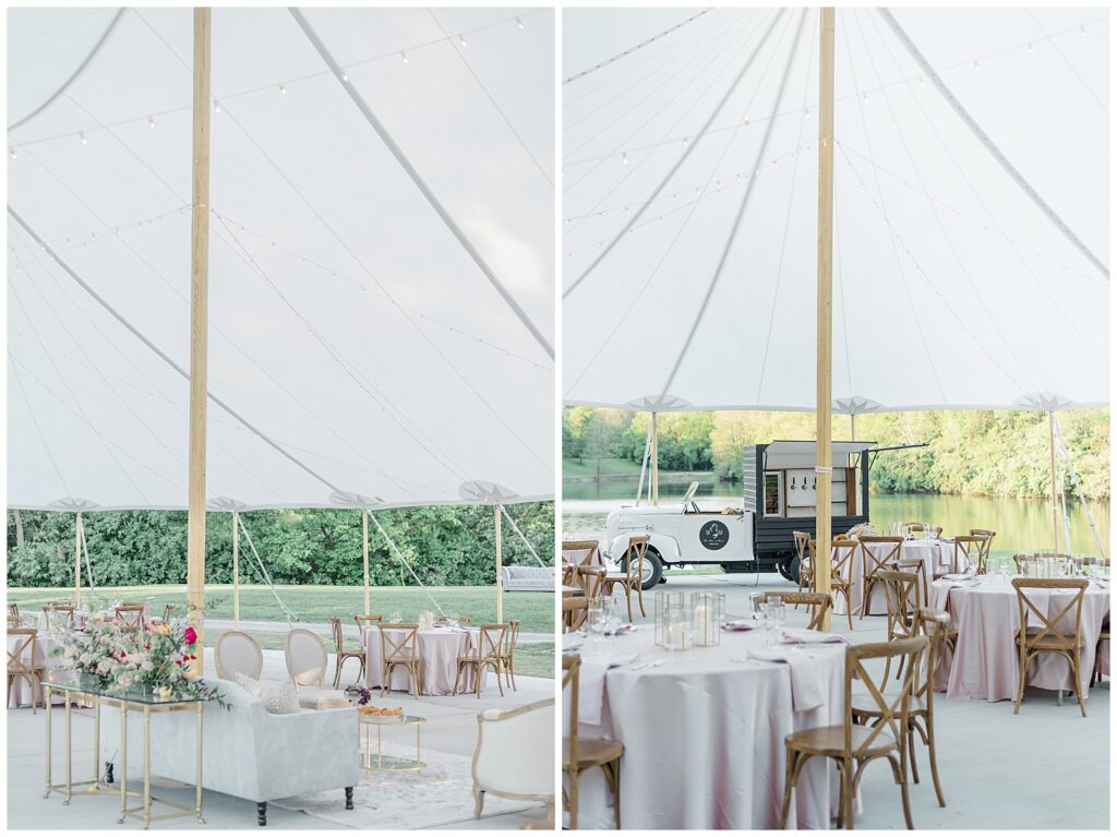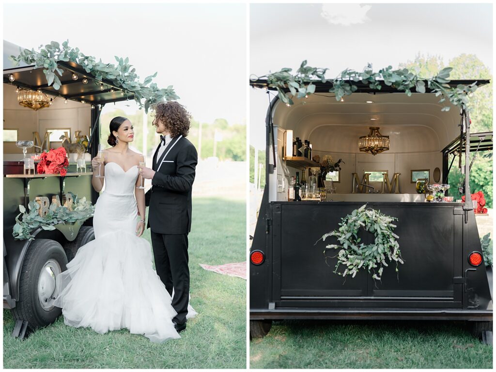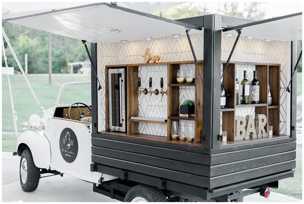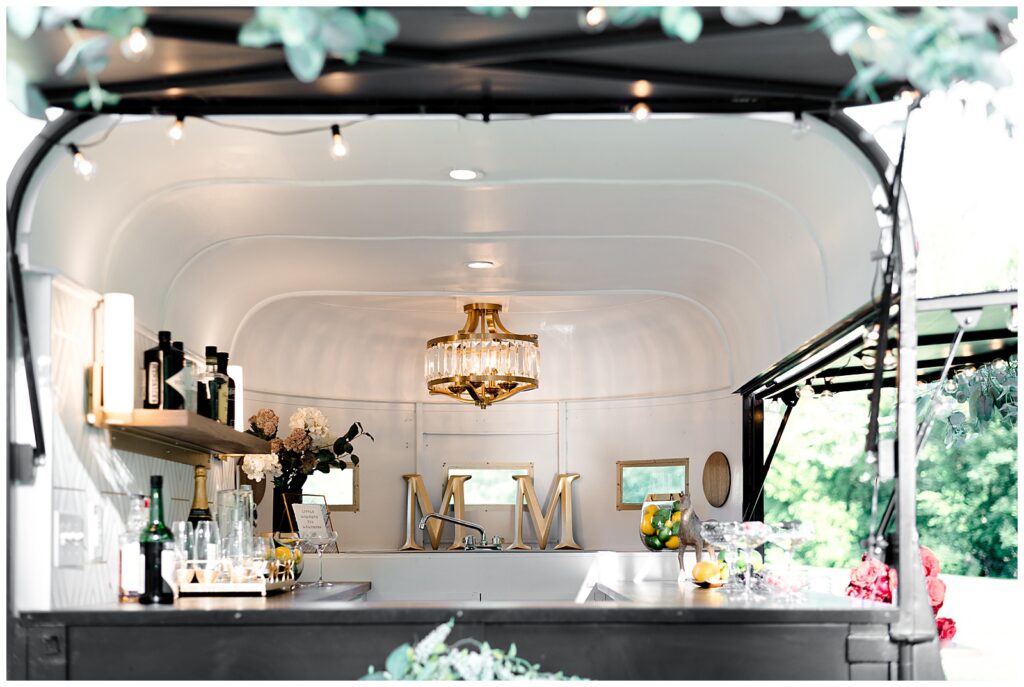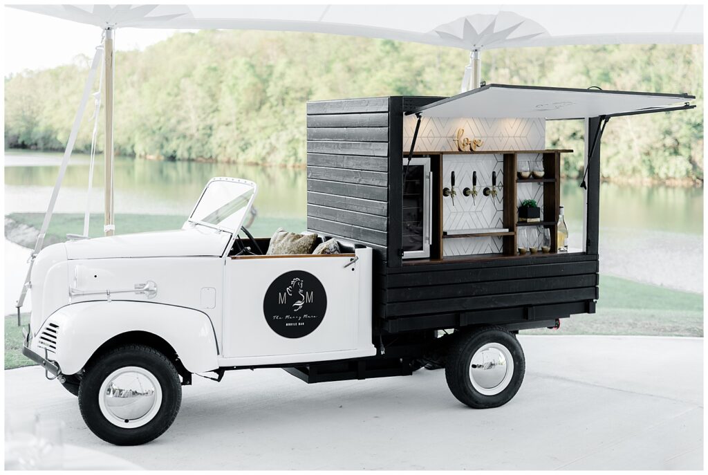 Indie Hollow also featured two unique travel drink vehicles near the reception tent — one a bar setup and the other a camper-style drink station. We captured the reception details, including a yellow floral cake, beautifully styled tablescapes, and creative layout elements.