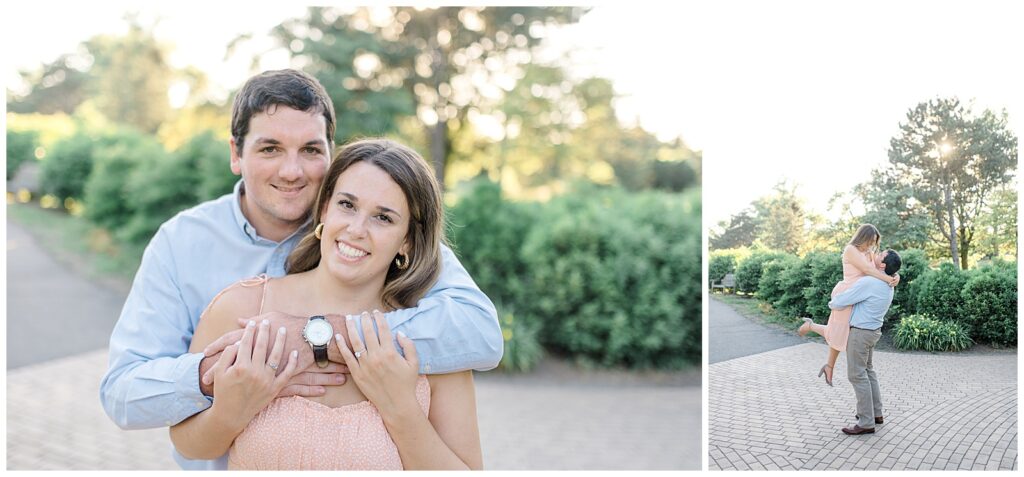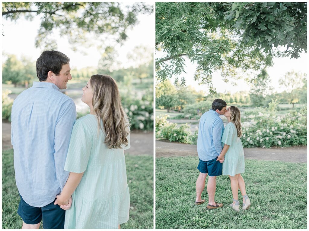 Allison began the session in a soft blush pink dress paired beautifully with Richie’s light blue button-up — one of my favorite color combinations for engagement sessions! They later changed into more casual outfits, with Allison wearing a seafoam dress that complemented the scenery and her complexion perfectly.