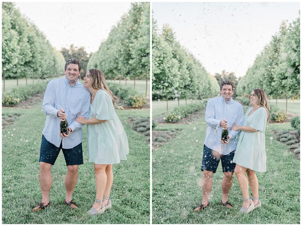 We were lucky enough to schedule their session when the flowers were in peak bloom, especially near the bridge area, and of course, we ended with a celebratory champagne pop! I am super excited to capture their wedding next year at Hotel Covington + The Madison Event Center!