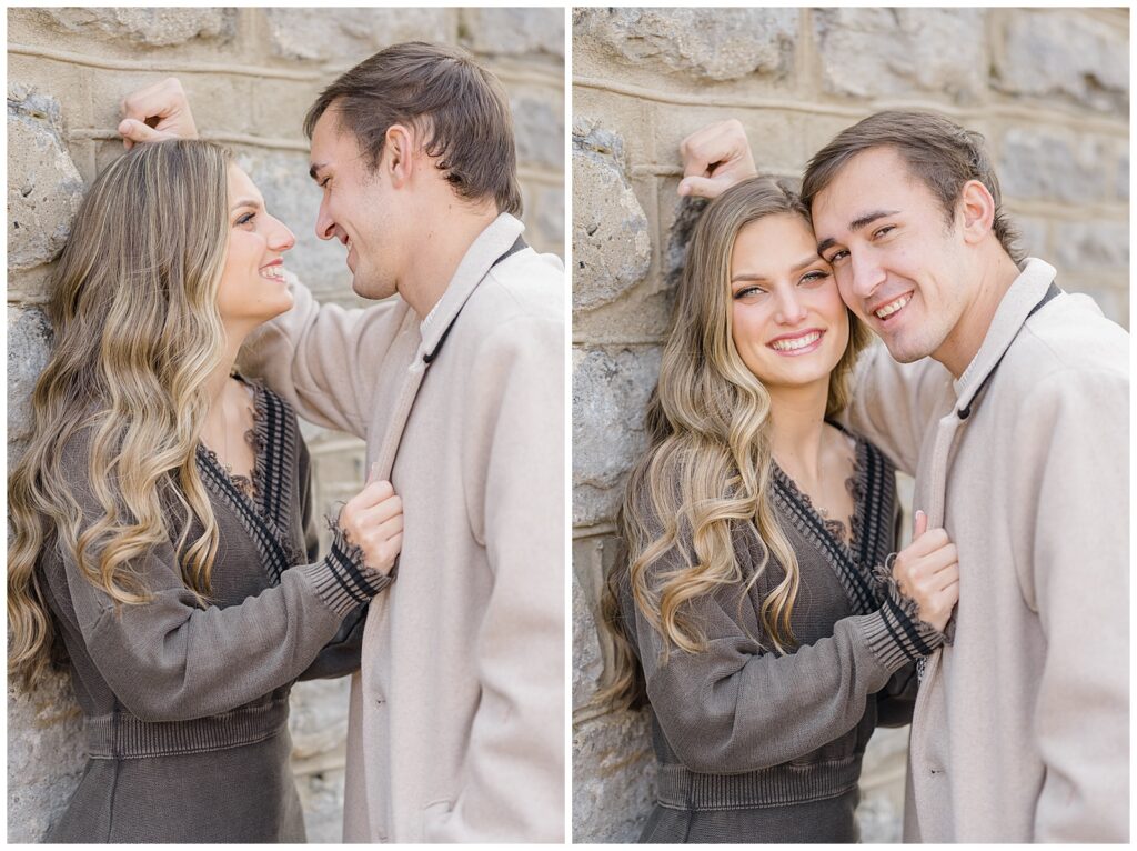 They started the session in perfectly layered fall outfits with browns, creams, and soft neutrals, which photographed beautifully against the autumn scenery. Later, Ashlynn changed into a stunning jewel-toned dress while Wes paired it perfectly with a light blue button-up. Their outfits were truly perfect!