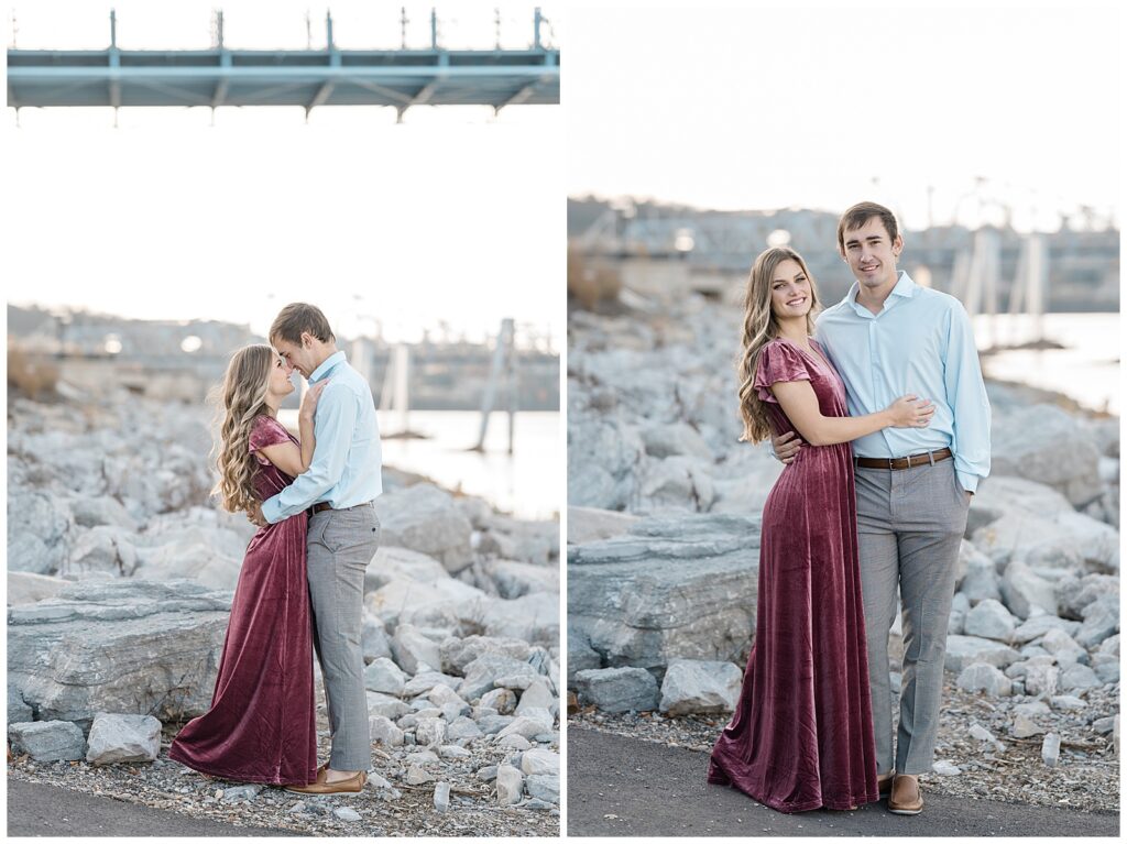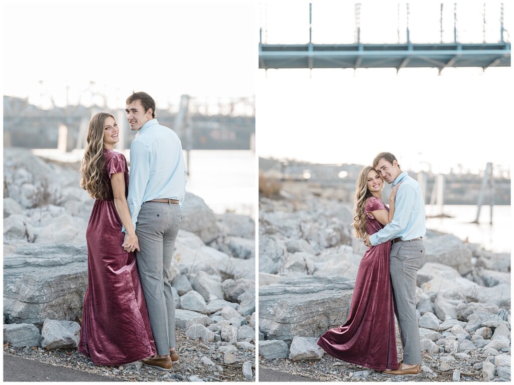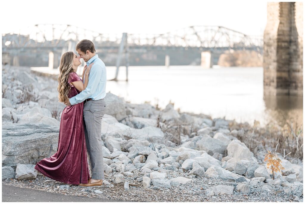 We explored the park together, capturing a mix of cozy and romantic moments, and finished near the river rocks — one of my favorite spots in the area. This George Rogers Clark Park engagement session was the perfect preview of their upcoming fall wedding at The Reverie, and I can’t wait to photograph their big day!