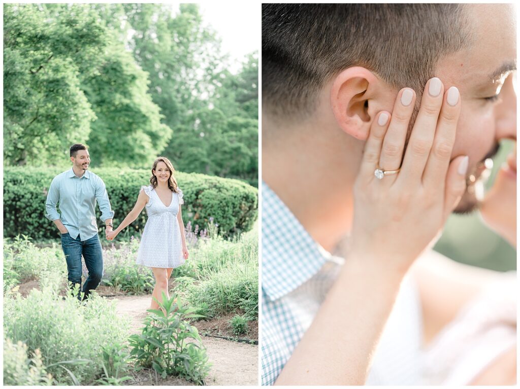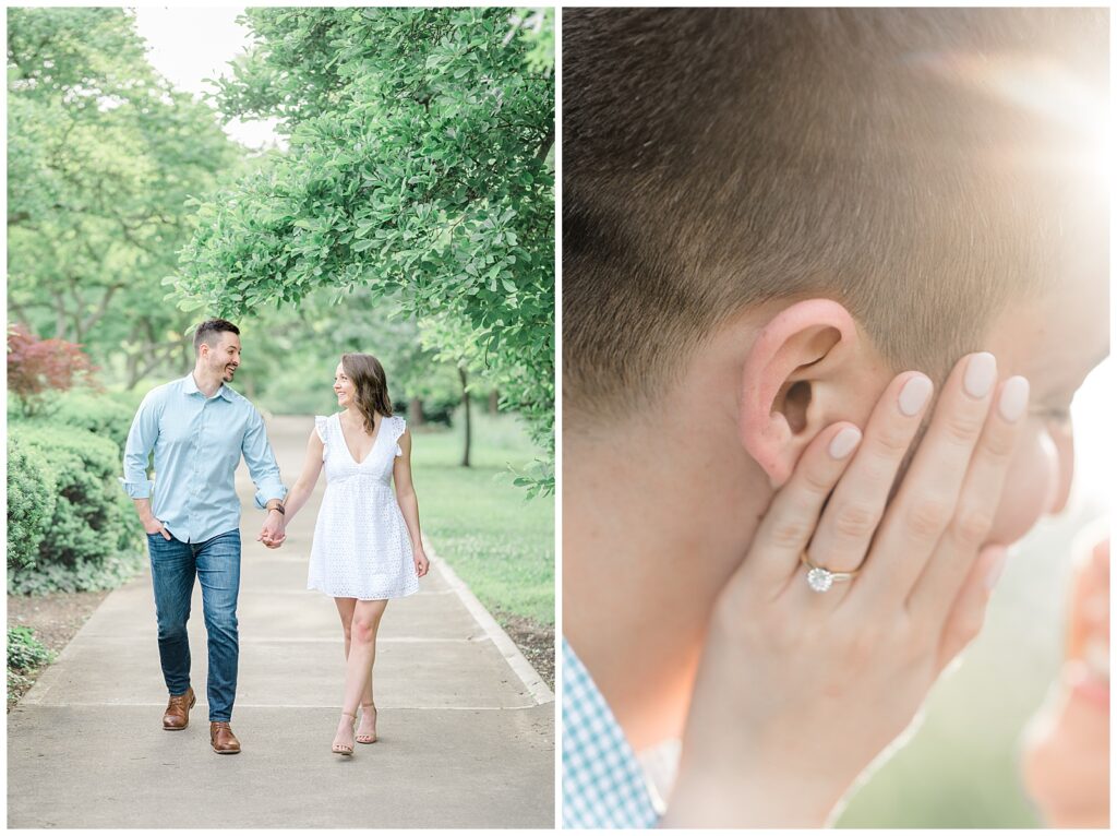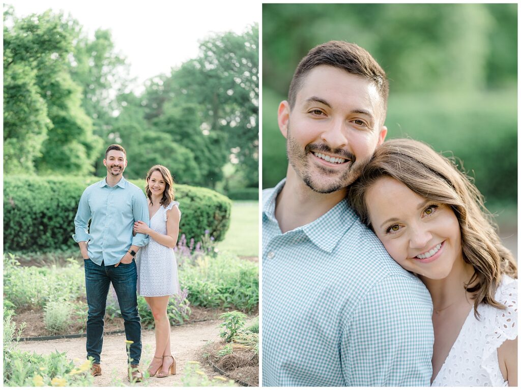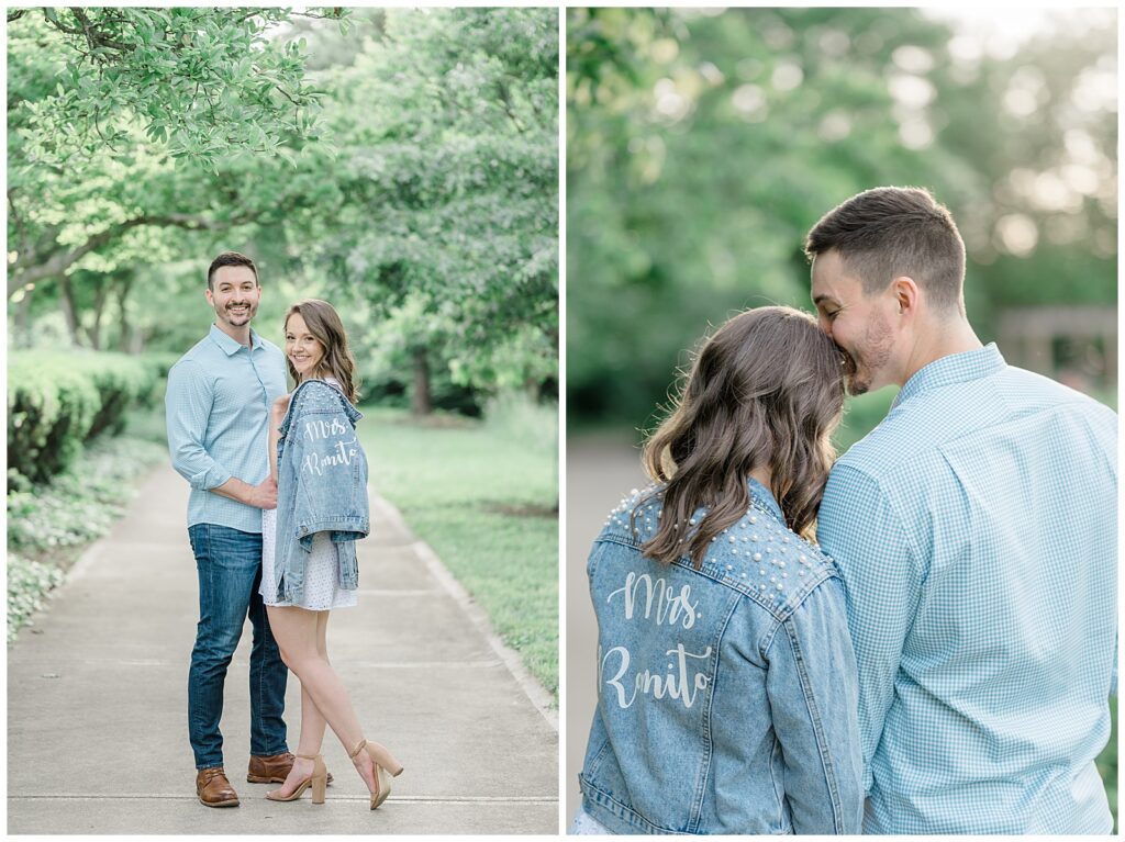 We wandered through the gardens, stopping at some of my favorite tucked-away spots. Then Mollie surprised me with one of my FAVORITE engagement session details ever…a custom pearl-studded denim jacket with her future last name on it. OBSESSED. Of course, we had to capture a few fun and stylish shots with it, and they turned out amazing.