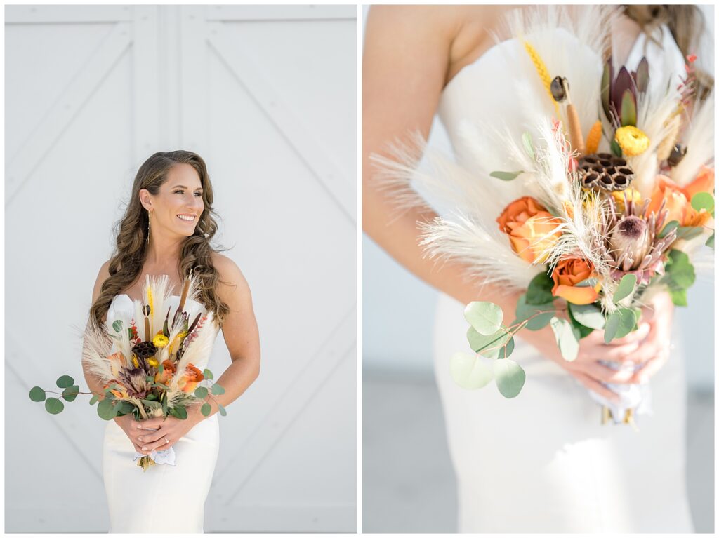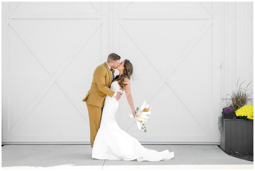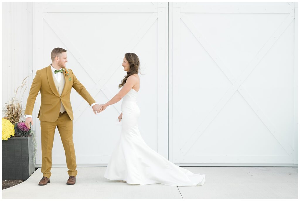We utilized the front of the venue for portraits, closing the barn doors to create a seamless, clean backdrop that felt timeless and elegant.