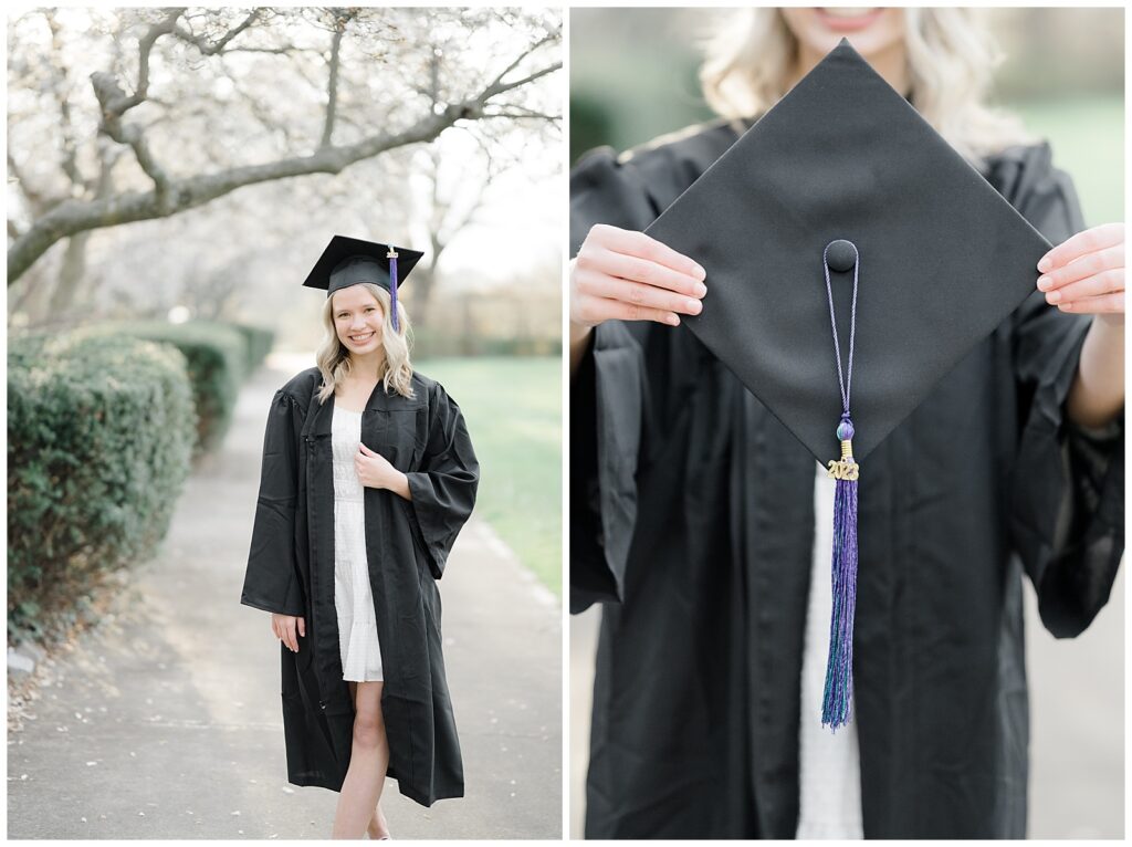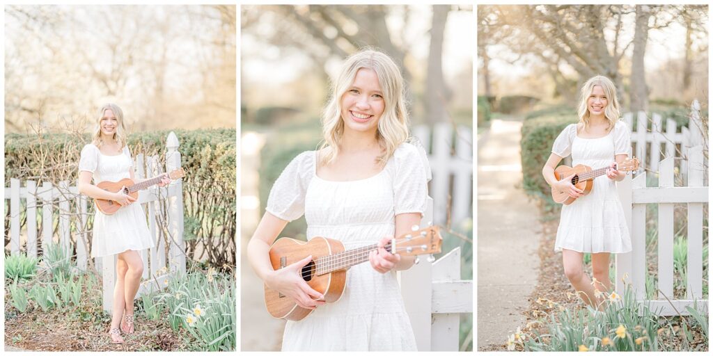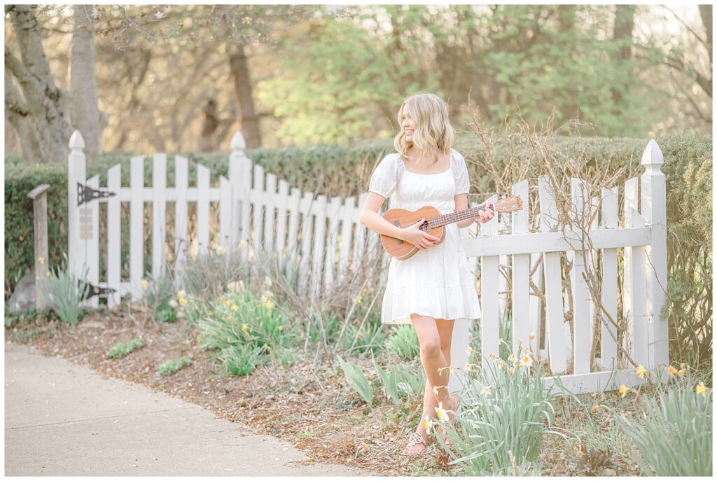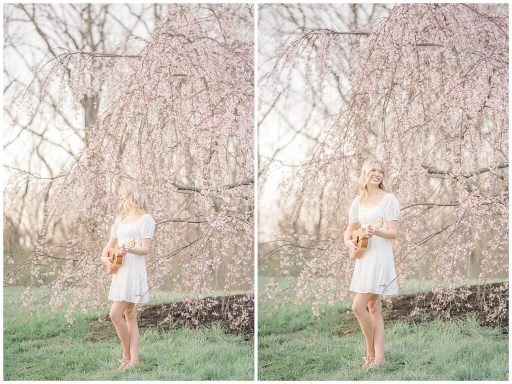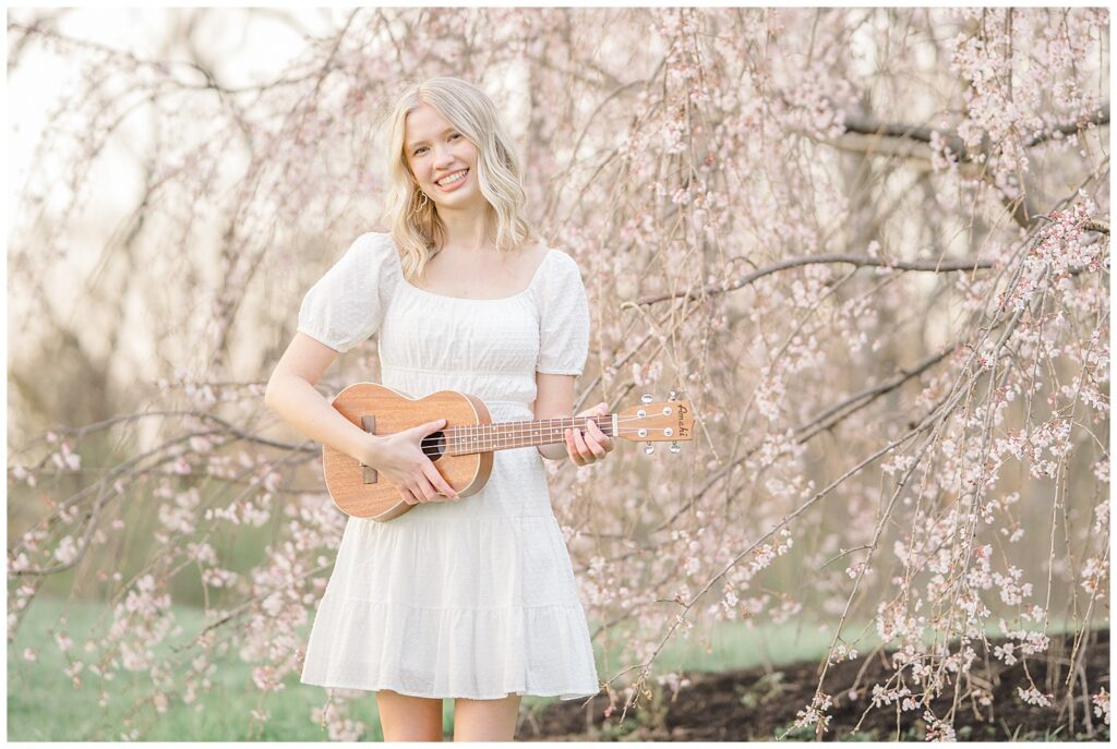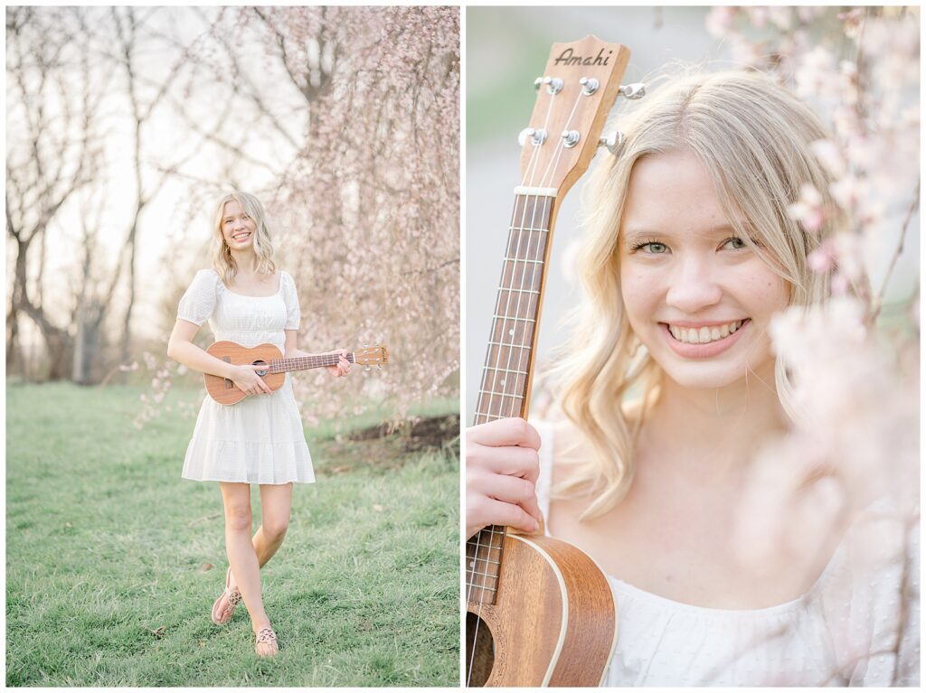 Because this was a spring session, Grace also brought her cap and gown, which allowed us to capture celebratory graduation portraits alongside her senior photos. I always encourage seniors to bring meaningful props, and Grace brought her ukulele, adding such a personal touch.