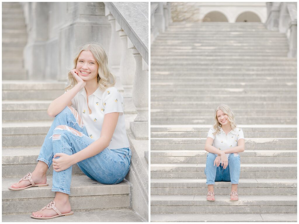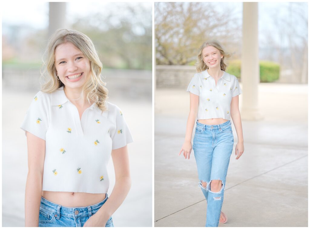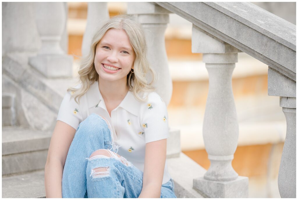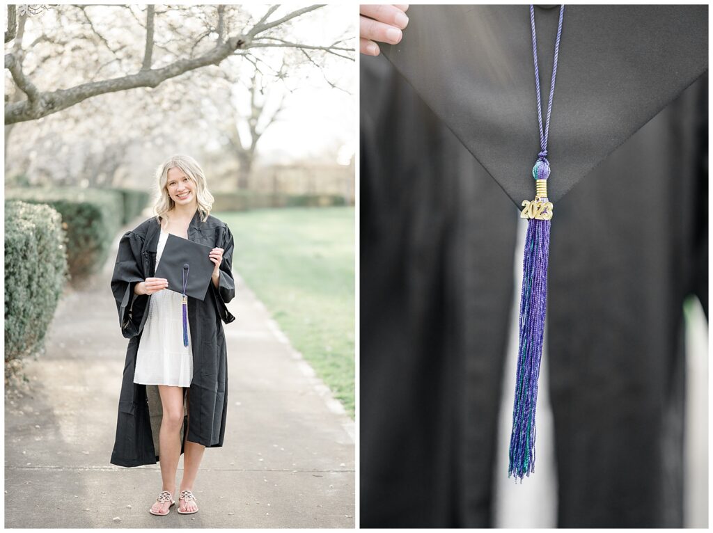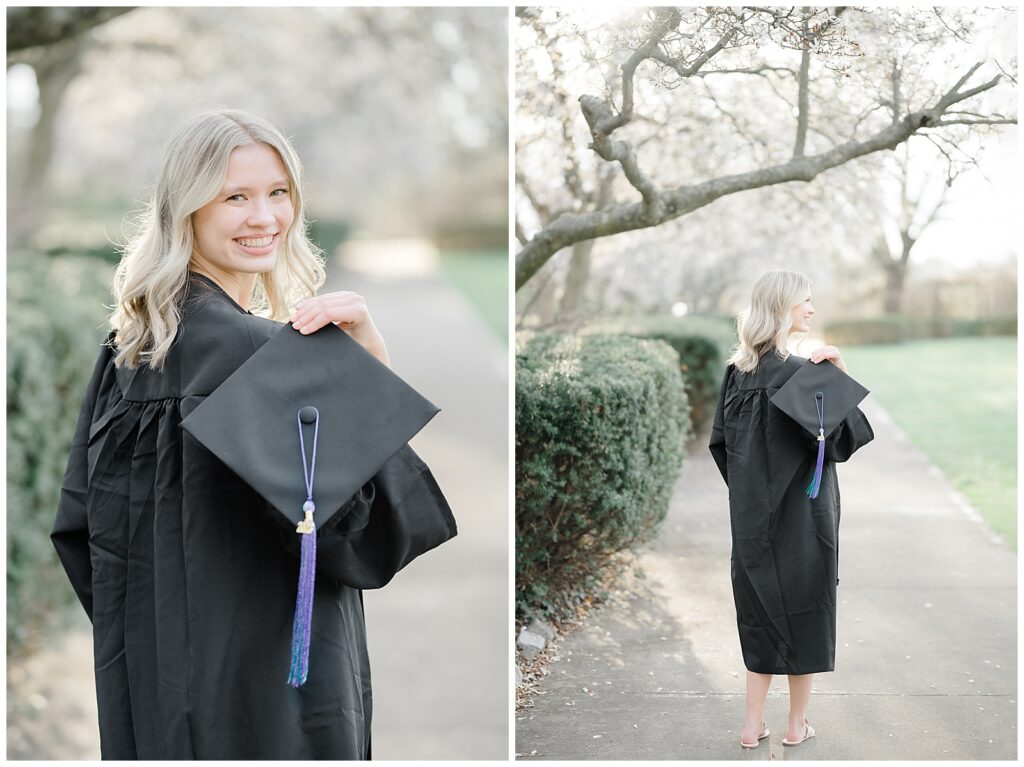 Because this was a spring session, Grace also brought her cap and gown, which allowed us to capture celebratory graduation portraits alongside her senior photos. I always encourage seniors to bring meaningful props, and Grace brought her ukulele, adding such a personal touch.