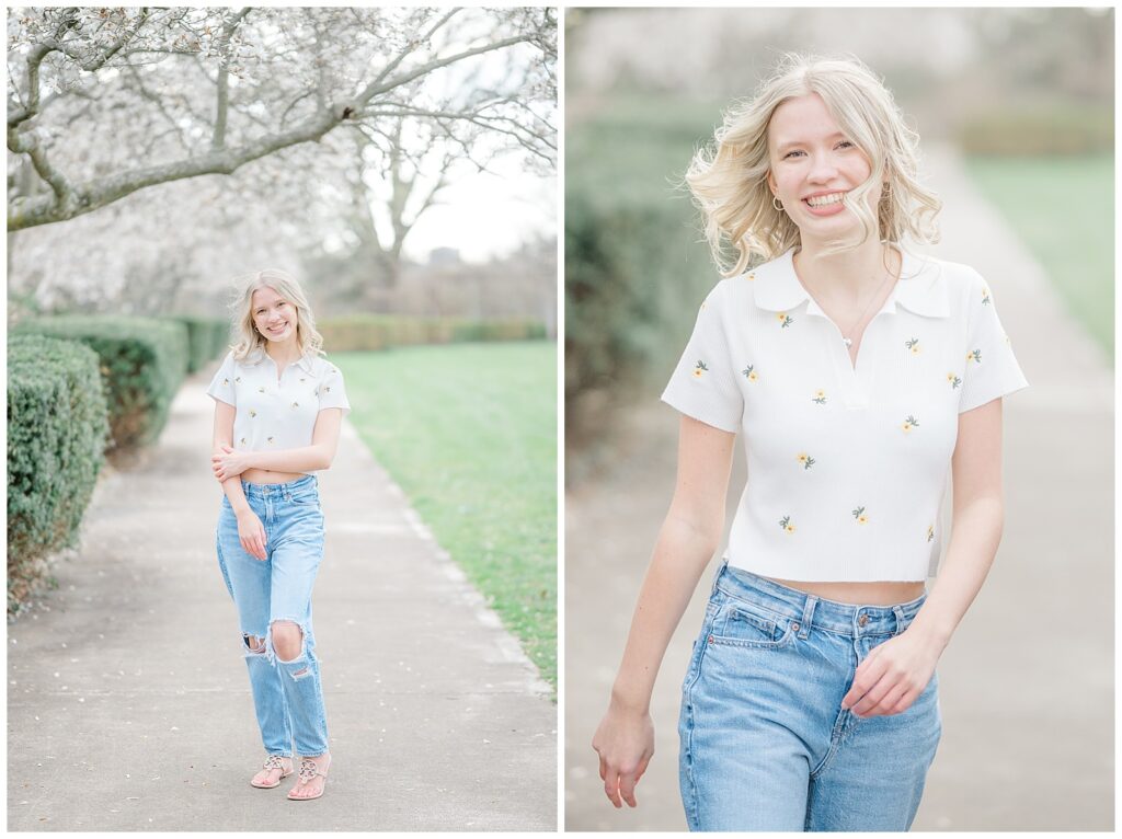 This Ault Park senior session with Grace was pure spring perfection. Cherry blossoms, golden light, and a joyful personality — truly goals.