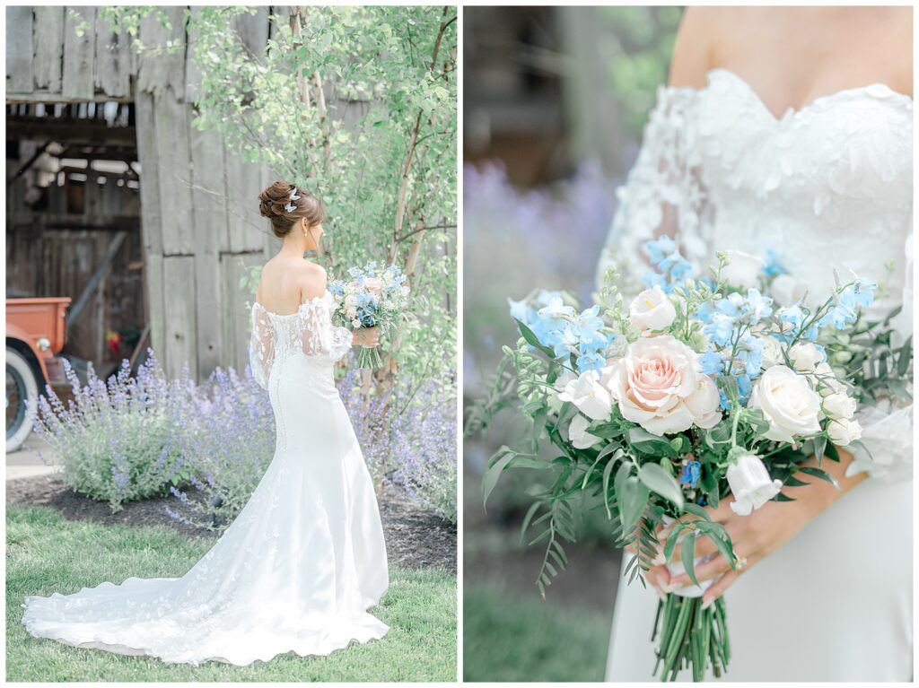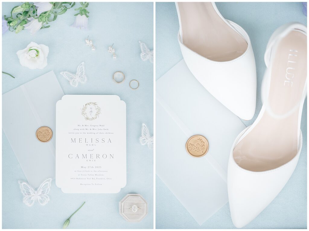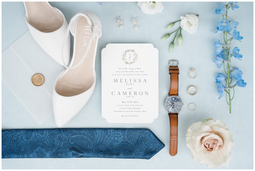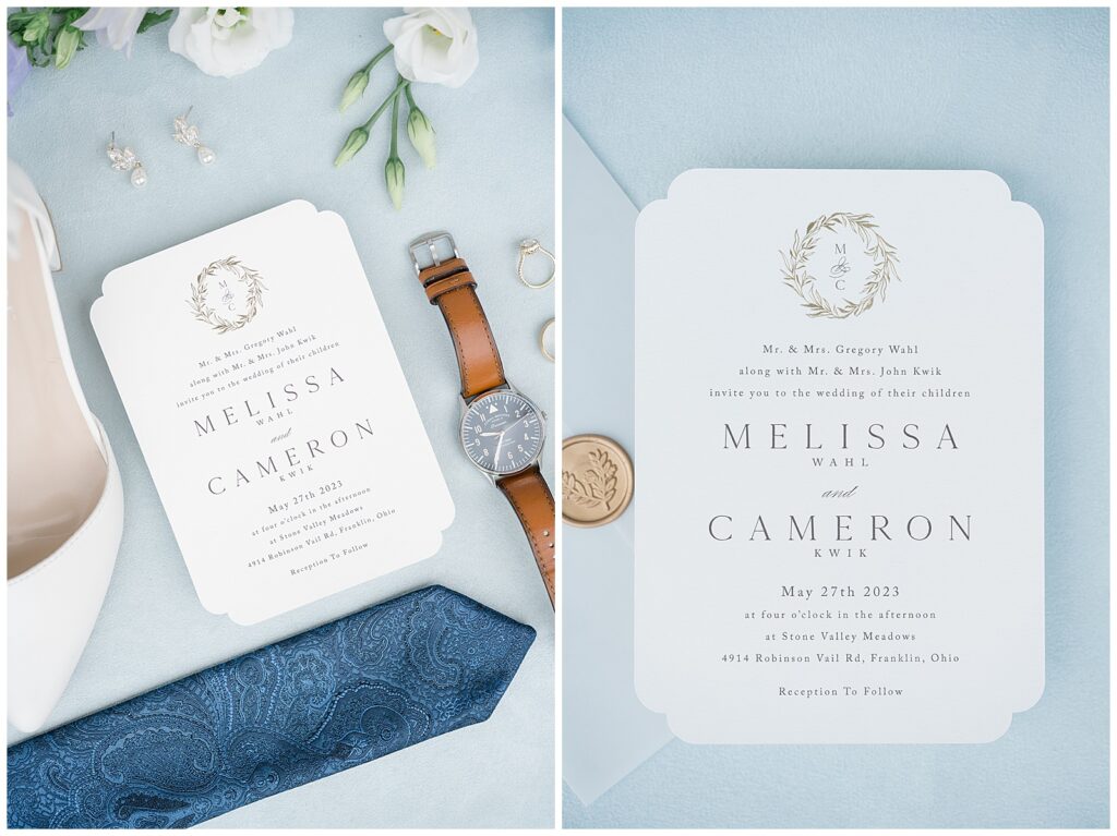 If you know me, you know I will always love a blue wedding color palette — and Melissa & Cameron’s wedding at Stone Valley Meadows in Franklin, Ohio, was an absolute dream from start to finish. This venue is one of my favorites, and their wedding showcased it beautifully.