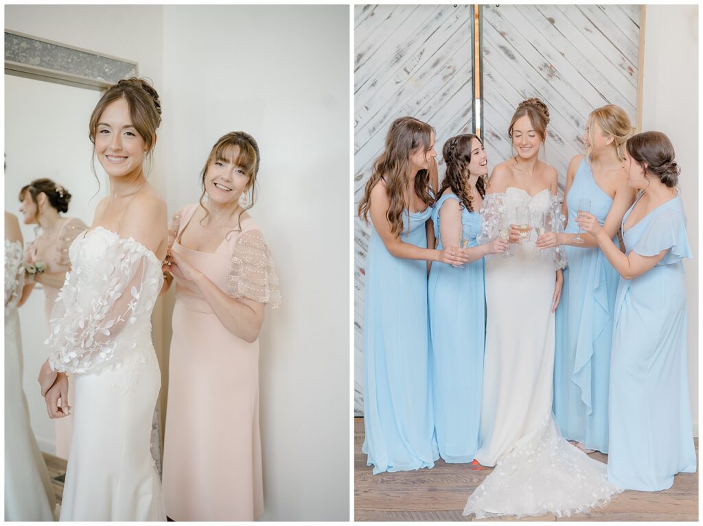 The bridesmaids wore soft light blue dresses that paired beautifully with the groomsmen’s blue suits. Everything flowed together effortlessly — classic, elegant, and timeless. Melissa’s bridal look was stunning. Her long-sleeved gown is truly one of my favorites, and her bouquet was absolute perfection.
