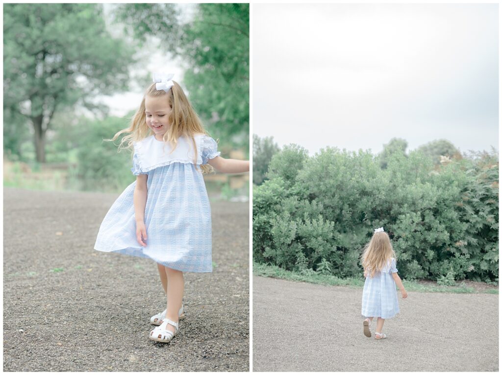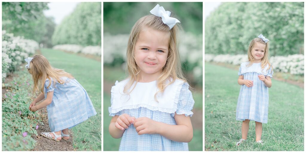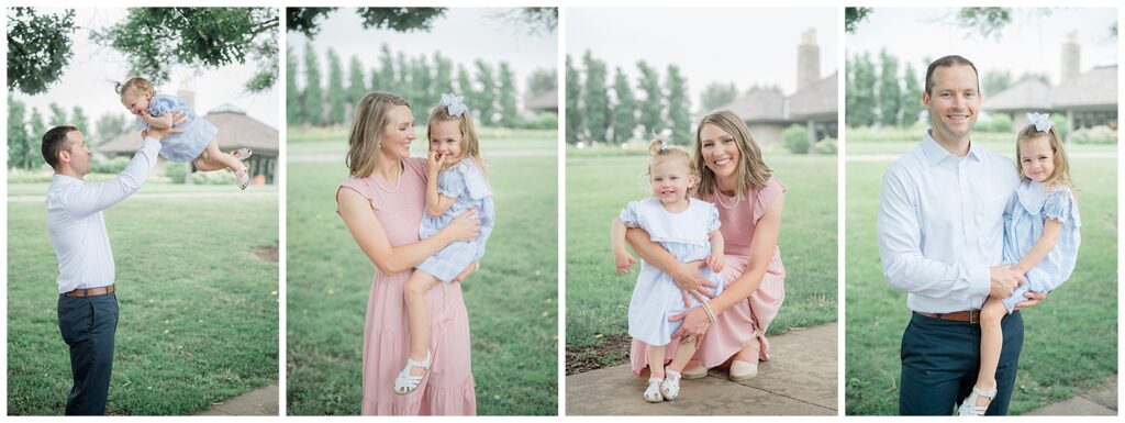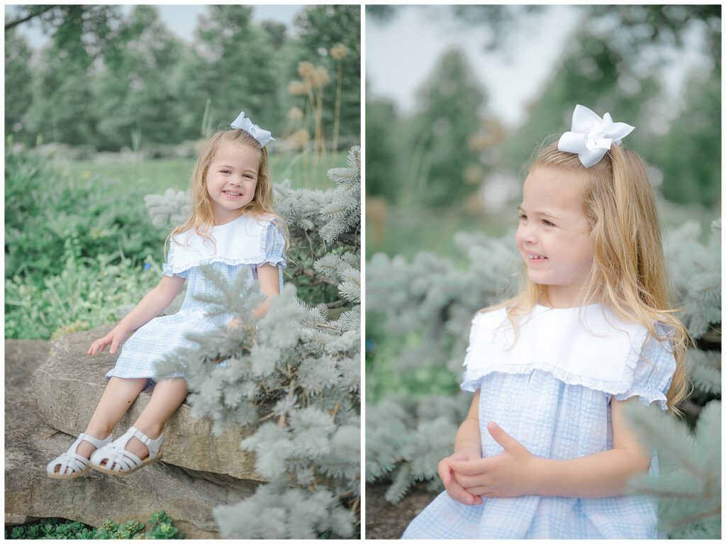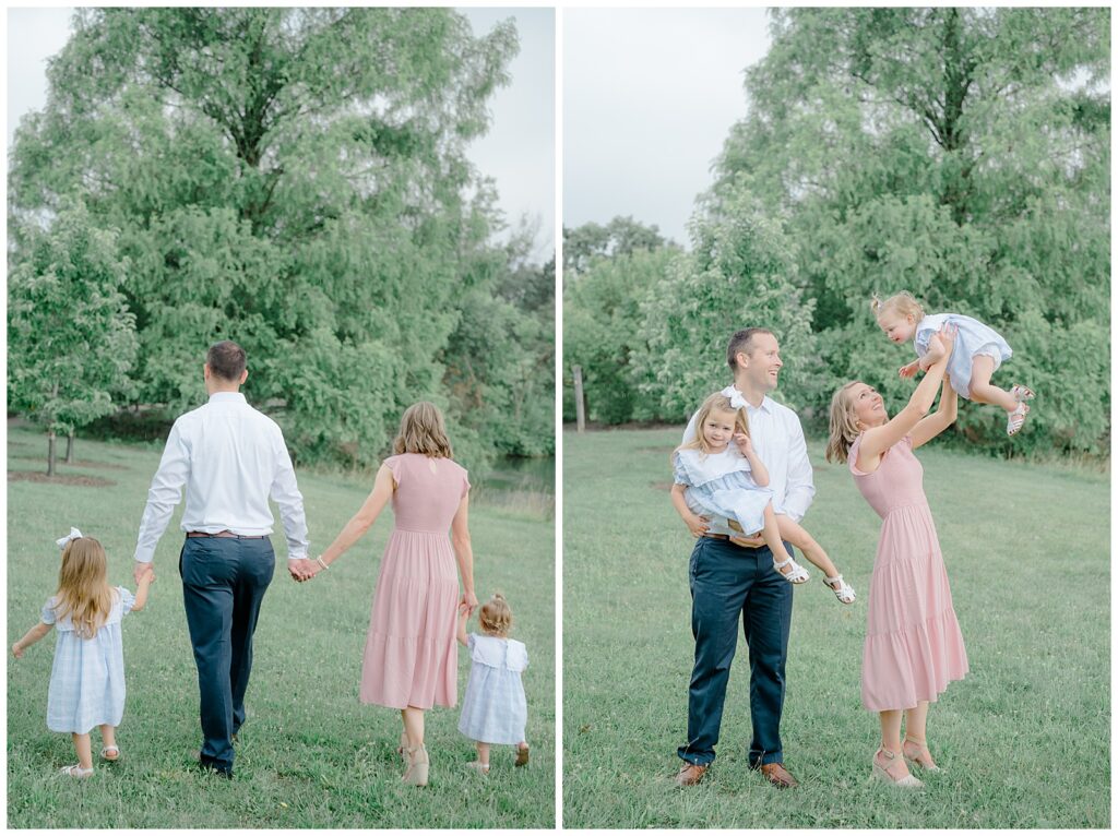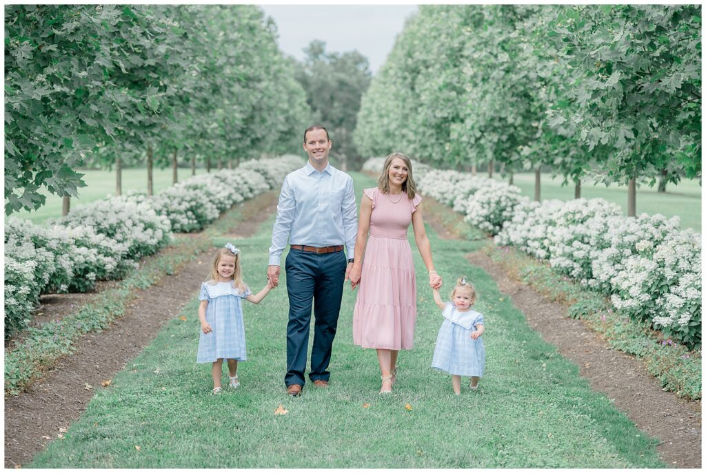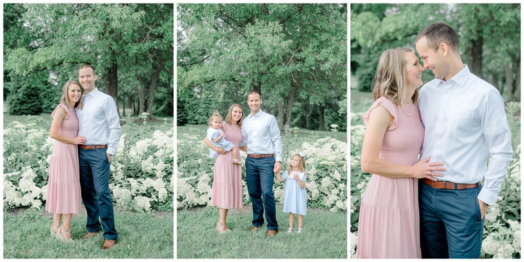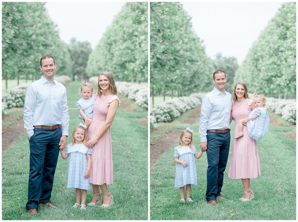 The Millers chose the prettiest pastel color palette for their session, with soft blues and blush tones that complemented the summer blooms perfectly. Their two little girls wore matching dresses, which added the sweetest touch of coordination without feeling overly styled. It was one of those outfit choices that photographs beautifully while still feeling natural and timeless.