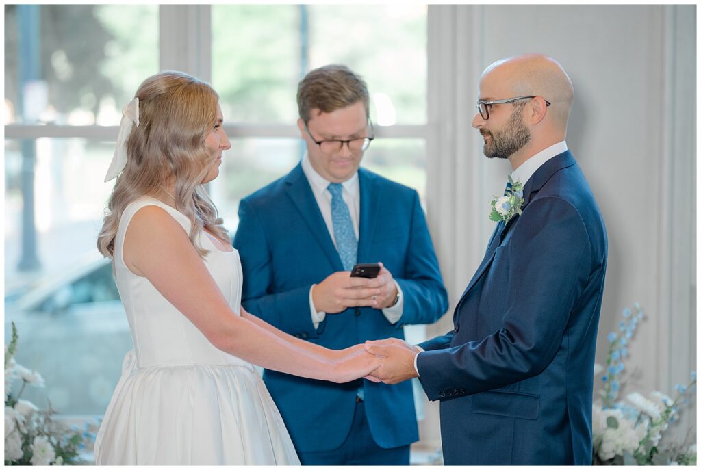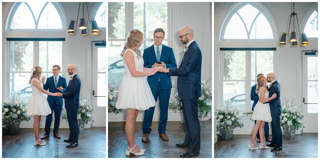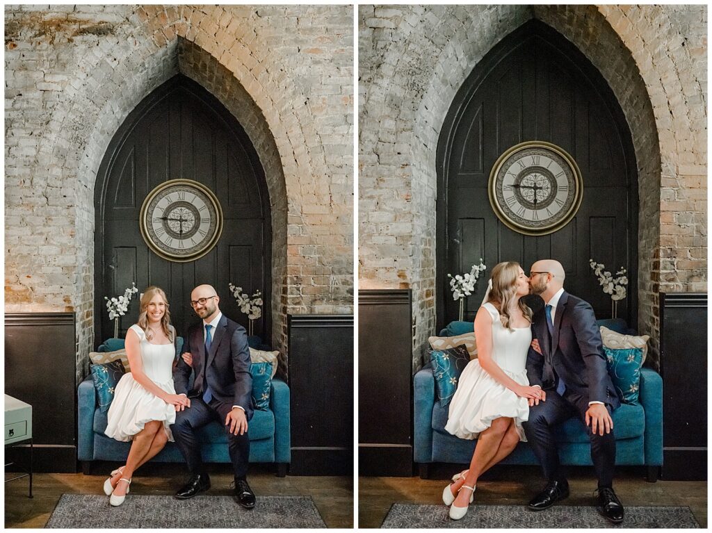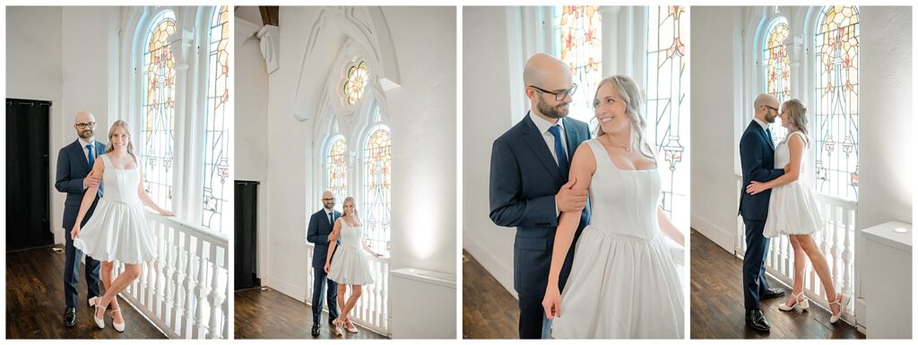 James looked sharp in a blue suit, while Kelly absolutely shined in a two-piece short bridal dress that felt modern, chic, and effortless. Before the ceremony, we captured a few quiet moments inside The Transept, taking advantage of its stunning architecture and natural light.