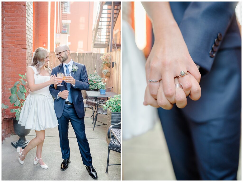 After the ceremony, Kelly and James celebrated with a drink on the patio before heading inside to continue celebrating with family. It was relaxed, joyful, and incredibly intentional — proof that intimate weddings can be just as meaningful and visually stunning as full-scale events.