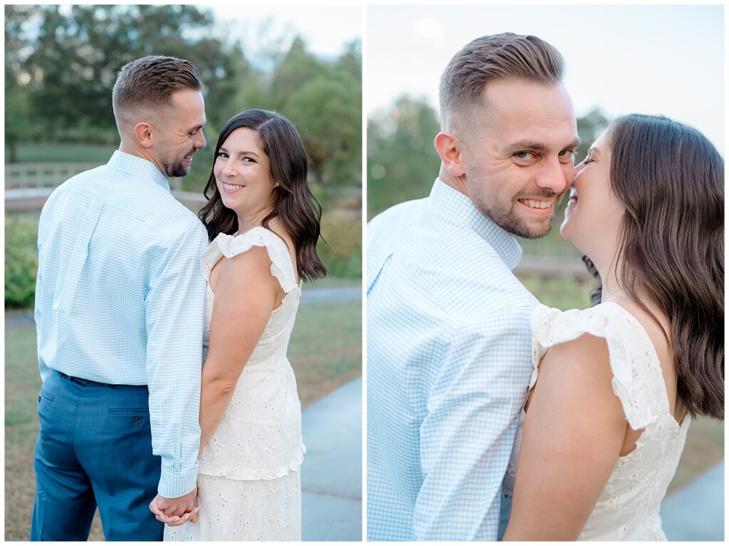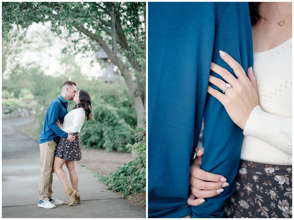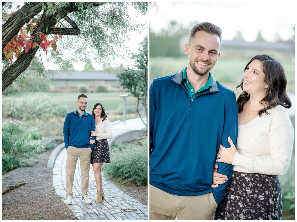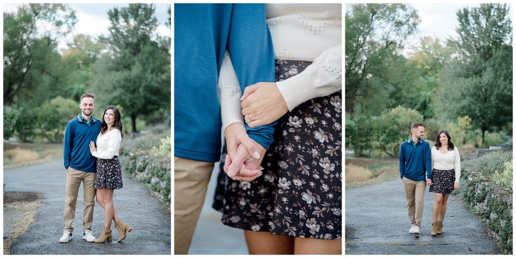 We started the session in a casual date-night outfit that felt cozy and relaxed. Becca wore a pretty sweater paired with booties and a skirt, while Zach layered his look with a sweater over a button-up — a styling choice I always love. Layering adds visual interest and photographs beautifully, especially in the fall.