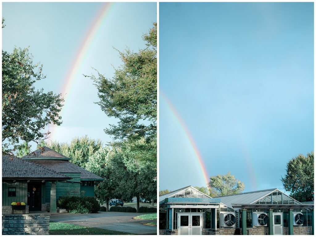 Just as we were transitioning into their second outfits, the rain started to pour. Thankfully, Cox Arboretum has a sheltered awning near the restrooms, giving them the perfect place to change comfortably while waiting out the storm. While they were inside, I stepped out and witnessed something incredible — rainbows. Not just one, but a double rainbow, nearly a triple. A truly once-in-a-session moment.