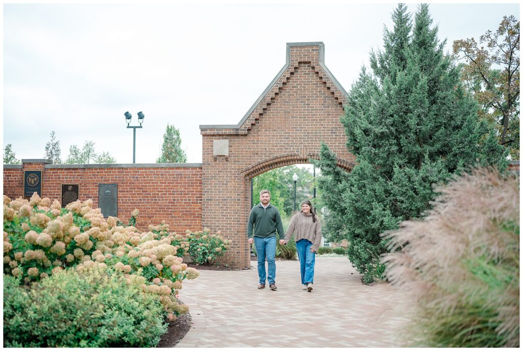 We began near the UD chapel and surrounding side gardens, which offered a timeless, peaceful backdrop. Mary and Owen’s earthy-toned outfits complemented the campus beautifully, blending seamlessly with the stone architecture and fall surroundings. As we explored the grounds, we even ran into a few classmates who stopped to say hello — a sweet reminder of just how meaningful this season of life is for them.