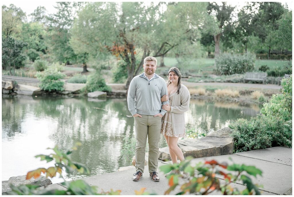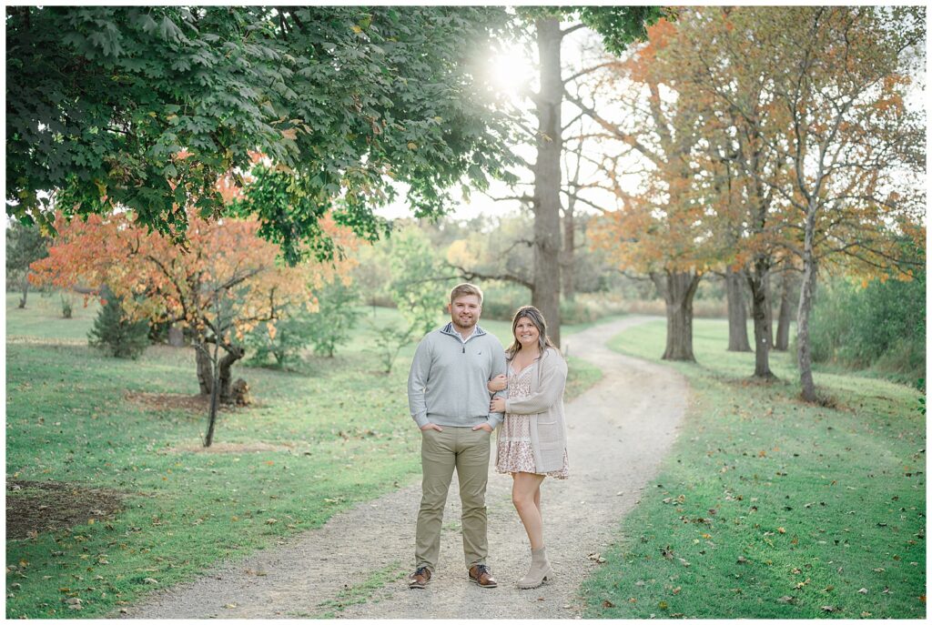 Cox Arboretum is one of my favorite engagement locations because of how versatile it is. We were able to capture a mix of open spaces, wooded paths, and gentle fall color without needing to walk far. The timing couldn’t have been better — early fall light, crisp air, and just enough seasonal color to hint at what’s to come.