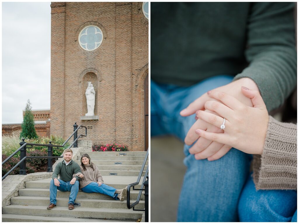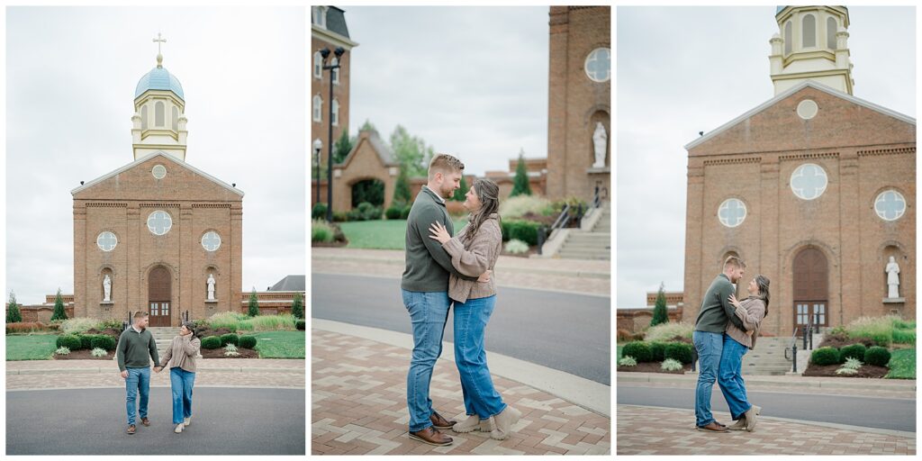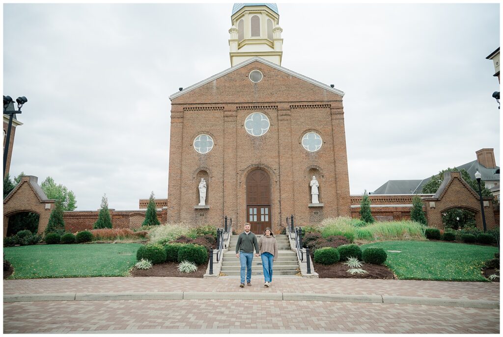Mary and Owen’s engagement session was the perfect mix of sentimental locations, cozy fall tones, and heartfelt moments. I absolutely love it when couples choose locations that mean something to them, and starting their engagement session at the University of Dayton made this one extra special.